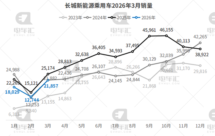 长城新能源3月销量21,857辆,环比增长71.5%,同比下降13.2%。公司正加速推进城市NOA高阶智驾技术下探至10万元级车型,聚焦“智能新能源”赛道,二代哈弗枭龙MAX等插混产品持续支撑市场表现。