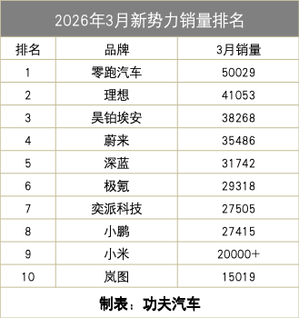 3月第一批公布销量的新势力有哪些看点?谁家的潜力更突出?让功夫汽车带大家一起看一下。