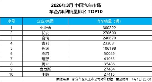 车家号·0浏览·2026-04-02 12:08 · 山西4 月 1 日,比亚迪发布 2026 年 3 月产销数据,单月总销量达300222 辆,强势突破 30 万辆大关,斩获中国车企销量冠军,并连续 58 个月蝉联中国新能源汽车销量冠军,持续稳固行业龙头地位。截至目前,比亚迪新能源汽车累计销量已超1580 万辆,一季度累计销售 700463 辆,以硬核数据印证技术与规模双重实力,助力一季度完美收官。