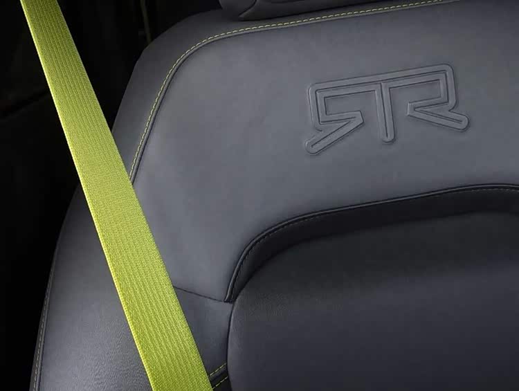 从发布的内饰来看,烈马RTR内饰设计巧妙融入了其外观上的标志性细节元素,其中最引人注目的便是RTR品牌专属的荧光黄绿色调,设计师将这一特色色彩精心延伸至车内多个部位,包括安全带、内饰缝线、车门拉手以及仪表板的装饰细节等处,形成内外呼应的视觉效果。