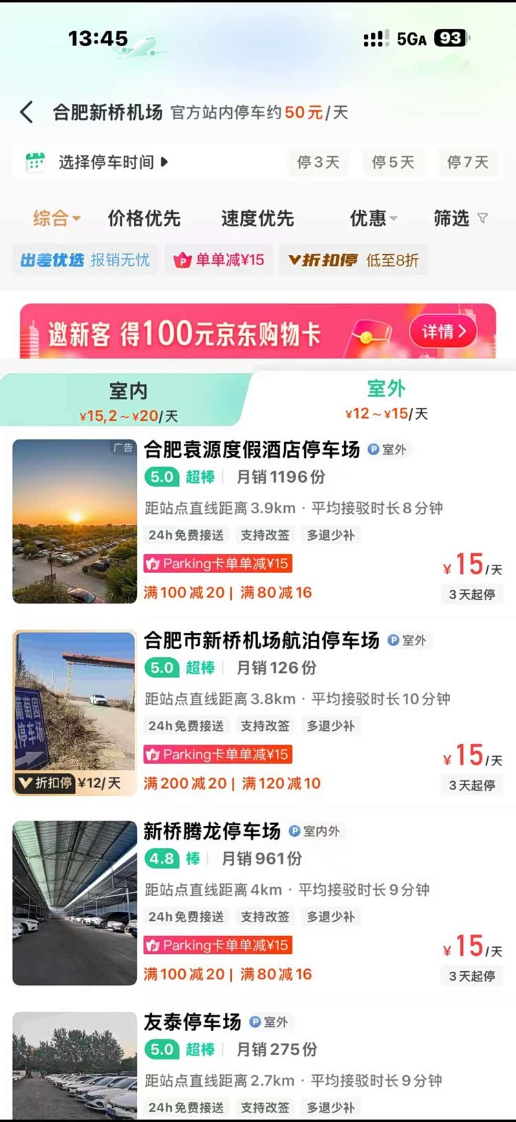 周边停车场正掀起“价格大比拼”热潮!通过小强停车平台线上预约合肥新桥机场周边的停车场,部分停车场单日费用低至12元起。只需微信搜索【小强停车】,即可轻松锁定车位,输入邀请码“58”,还能领取38元停车抵扣券,进一步节省出行成本。这些停车场不仅提供24小时免费接驳服务,车辆5分钟即可直达航站楼,步行通道也宽敞便捷,全程畅通无阻。相比官方停车场,性价比优势显著,尤其适合多孩家庭或计划长途旅行的朋友。提前预订车位,不仅能避免出行高峰期车位紧张的困扰,还能让全家出行更加省心、省钱,尽享轻松愉悦的旅程!