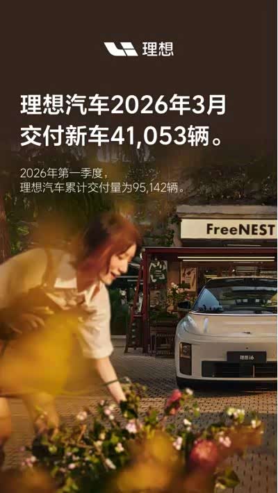 3月交付41,053辆,环比增长55.38%,纯电i6单月破2.4万,AI技术接连发布,全新L9蓄势待发——理想在2026年春天交出了一份稳中有进的开局答卷。