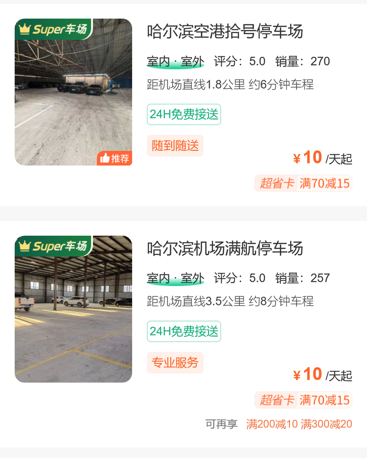 而对于停车时间较长的旅客,通常是自驾到机场坐飞机的,如果选择机场停车场,从上面的收费可以看到,停车费并不便宜,更合适的停车场是机场附近停车场,收费只要10到20左右一天,而且还能在淘车位小程序上提前预订,不怕没有位置。