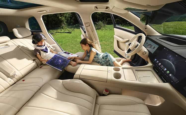 内饰层面,两款车均走高端豪华路线,核心差异在屏幕布局、座椅配置与座舱科技感。ID.ERA 9X采用环抱式错层座舱,融合德系功能美学与东方空间哲学。舒适性配置上坚持全系满配,副驾零重力座椅、二排动态零重力座椅全系标配,座椅支持加热、通风、按摩功能;搭配前双叉臂+后五连杆、双腔空气悬架与VMC智控中枢,具备智能魔毯、一键调平功能,滤震效果出色,驾乘舒适性拉满。