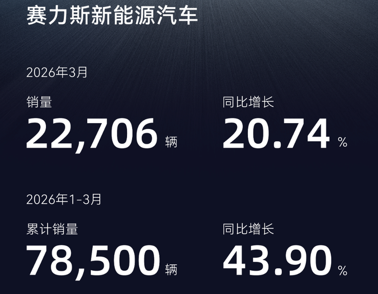 赛力斯销售22,706辆,同比增长20.74%,因为赛力斯除了问界之外,还有其它的新能源品牌蓝电,数据可能不是很准,按照蓝电以往的销量表现,我觉得就1000多辆左右吧。