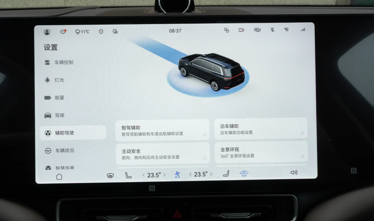 在智能化方面,两款车也代表了两套不同的方案。问界M9最大的亮点在于其搭载的鸿蒙智能座舱和华为ADS高阶辅助驾驶系统。华为在消费电子领域积累的设计能力,让其车机系统的交互流畅度和生态联动体验有比较明显的优势。其全车搭载36个传感器,包括1颗量产最高896线激光雷达,配合华为的算法,能够实现较为领先的智驾功能。