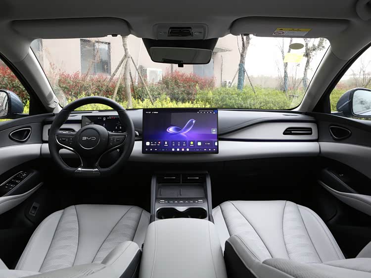 内饰方面也没有什么变动,提供有三幅式多功能方向盘、悬浮式全液晶仪表盘、悬浮式中控屏以及电子怀挡,操作台部分设计有无线充电面板以及杯架,下方还有尺寸比较大的储物槽。