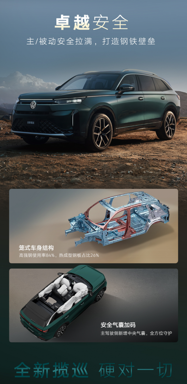 家庭出行场景下,大五座空间与人性化储物设计发挥核心作用,后排宽敞空间保证老人孩子乘坐舒适,693L后备箱可轻松收纳婴儿车、露营装备、超市采购物资。全面主被动安全配置为全家保驾护航,德系高强度车身与多气囊提供底层防护,智能驾驶辅助主动规避风险。副驾娱乐屏可满足孩子娱乐需求,车载WIFI让旅途不再无聊,打造移动温馨家庭空间。
