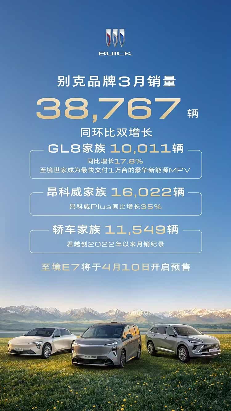 现阶段,上汽通用主要聚焦别克和凯迪拉克品牌。而据我们了解到的信息,别克品牌3月销量38767辆,同比、环比均实现增长。作为上汽通用的代表作, 别克GL8(参数|询价)家族3月销量为10011辆,较上年同期增长17.8%,其中别克至境世家3月销量2664辆,自去年12月上市以来累计交付已突破1万辆。
