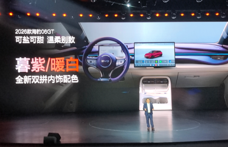 2026款海豹06GT延续高颜值,全系6款车身颜色,新增波西娅玫红、镜海银。内饰两款配色,新增暮紫/暖白双拼配色,都很有高级感。