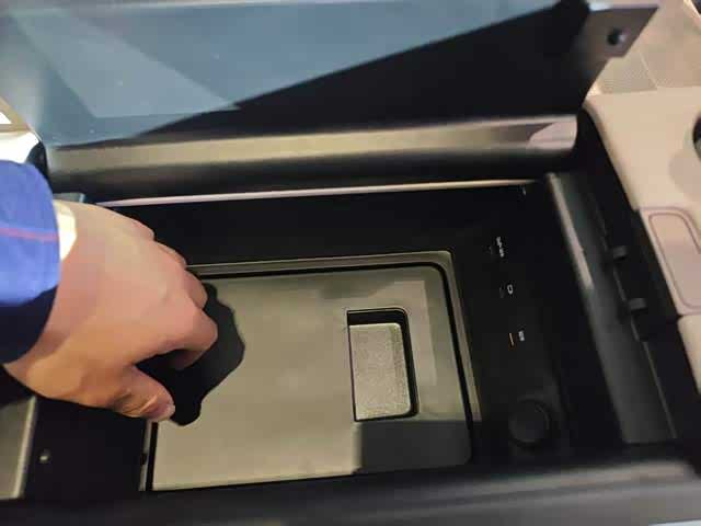 这是中央扶手箱打开后第一层,再打开就是冰箱了。有没有发现插孔也在这里面,和智己LS9应该是不一样的地方。