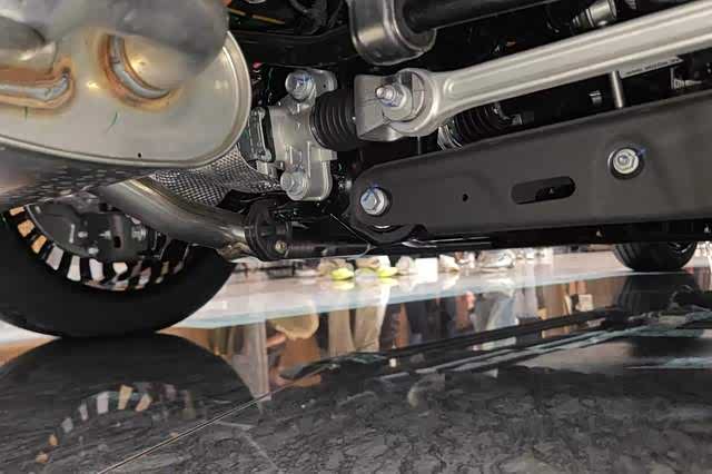 你会发现,智己LS8的后悬架也不是白闪闪的铝合金,而是有一大块黑家伙,使用钢材的原因更简单。因为智己LS8全系都有后轮转向,后轮转向器的下摆臂通常由钢而不是铝制成,主要原因是需要钢材优异的原始强度、在重载和重复载荷下更高的耐久性同时具有更好的抗冲击性和结构刚性,而铝材虽然更轻,但耐用性和抗冲击性要稍差些。