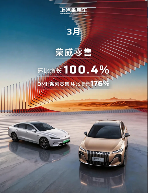 在新产品方面,尚界Z7与Z7T开启预售后,24小时订单超过2.5万,反映出新车型在定价与配置组合上的吸引力。与此同时,上汽通用新能源车销量达到1.6万辆,同比增长221.3%;上汽通用五菱新能源销量为11.4万辆,继续承担走量角色;上汽大通新能源车销售1.5万辆,同比增长19.7%,其中轻客“大拿”系列在3月份实现超过300%的同比增长。整体来看,多品牌在不同细分市场形成分工,推动新能源销量持续放大。