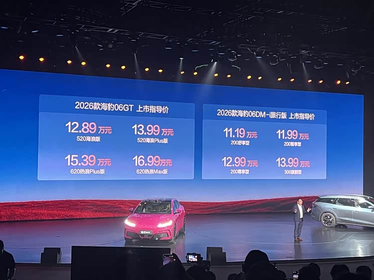 4月2日,比亚迪海洋网迎来双车同步上市。其中,2026款海豹06DM-i旅行版定位“全球精品超混旅行车”,共推出4款车型,上市指导价区间为11.19万-13.99万元,可享限时免费享价值2000元极汐绿外观色等购车权益。2026款 海豹06GT(参数|询价)定位“高能潮趣座驾”,共推出4款车型,上市指导价区间为12.89万-16.99万元,可享限时免费享价值3000元个性外观色(波西娅玫红或镜海银)等购车权益。两款新车均已陆续到店,实现上市即交付。