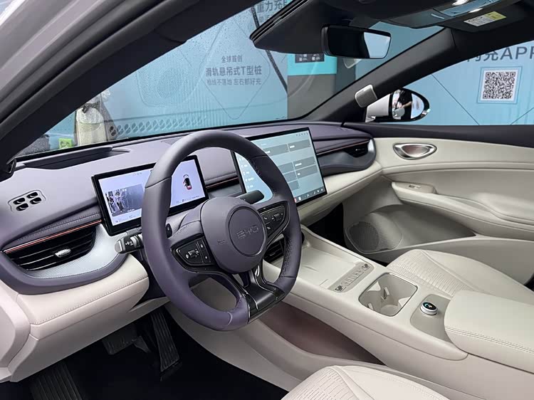 内饰方面,新车引入暮紫/暖白双拼搭配,并升级127色环舱氛围灯,满足年轻用户的个性化审美。车辆搭载智能座舱高阶版-DiLink 150,车机系统采用全新座舱UI,支持5G速联、四音区智能语音交互等功能。舒适配置上,新车增加主驾8向电动调节+4向腰撑,配备冷暖两用车载冰箱,VTOL移动电站外放电功率升级至6kW,并配有Dynaudio品牌12扬声器音响。