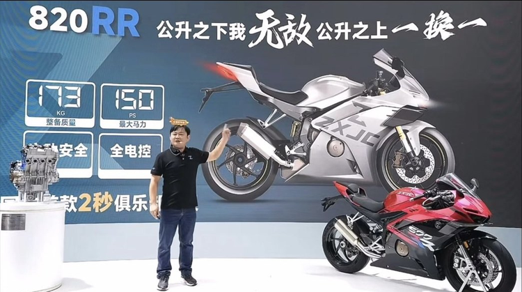 所以张雪这一次夺冠,含金量特别的高,因为它证明的是咱们自家造的车子,底子够硬。那么他用的车呢,就是基于自家820RR赛化的版本。参赛的组别是SSP,相当于是中量组。那么用张雪的话来讲,这个你可以理解成是高中篮球联赛,再往上的话就是打大学篮球联赛了。
