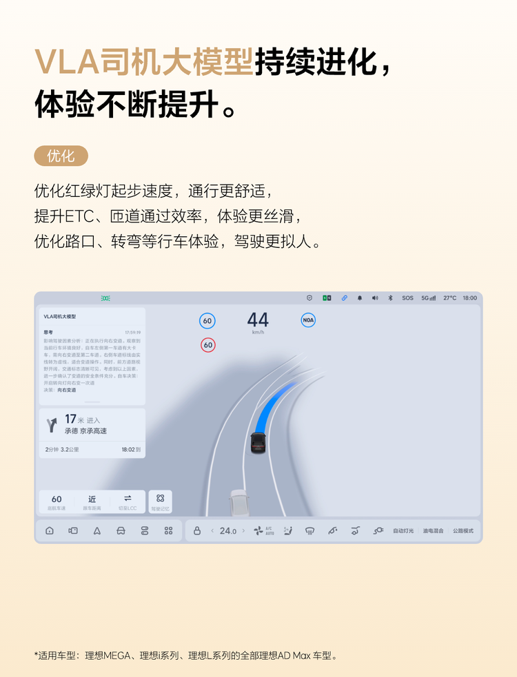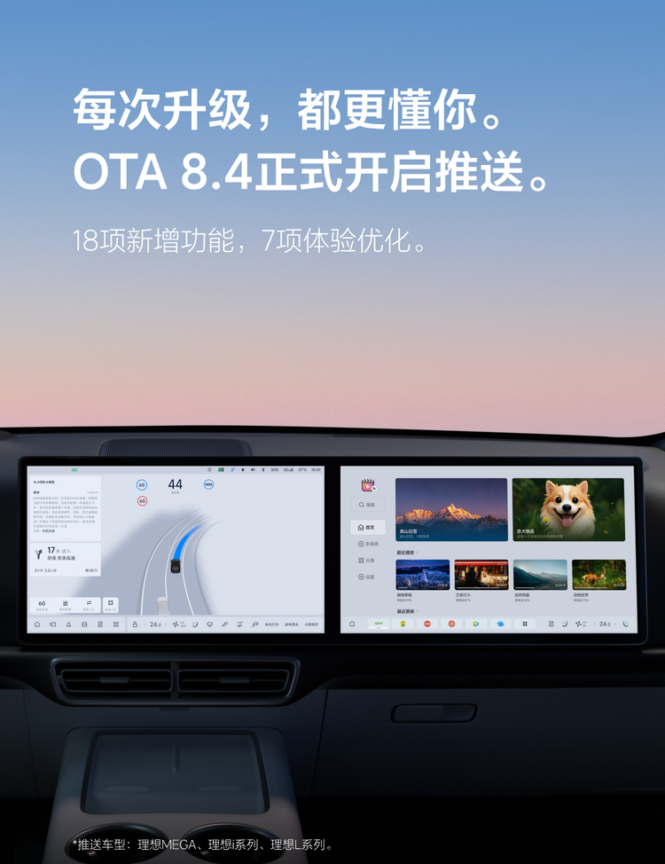 理想汽车OTA 8.4版本正式推送,这次更新把重点放在了辅助驾驶和智能座舱这两个核心领域。VLA司机大模型得到了多方面的优化,行车体验更接近真人驾驶。同时,理想AI眼镜Livis和车机系统实现了深度的生态联动,还新增了一些实用的功能和娱乐玩法。这次升级覆盖了理想L系列智能焕新版Max车型、 理想MEGA(参数|询价)以及理想i系列的相关车型。
