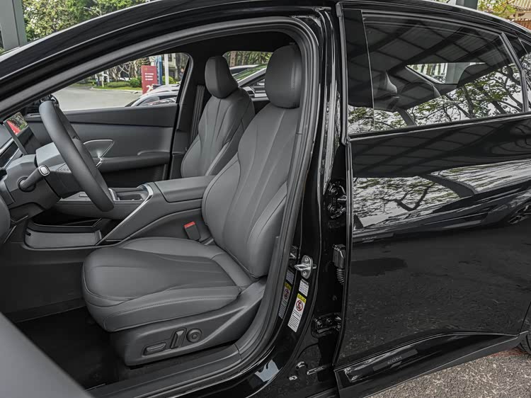 车身侧面延续现款比例结构,新增19英寸六辐式轮圈。整车长宽高为4785/1896/1445mm,轴距2815mm,属于标准紧凑级纯电轿车尺寸区间。从空间表现来看,后备厢容积提升至621L,较改款前有所增加,在日常通勤与中短途出行场景中具备更高实用性。尾部新增后包围通风口,同时尾灯支持流水式转向显示,主要变化集中在功能细节层面。