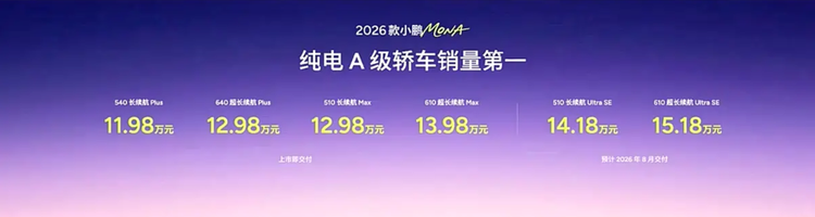 日前,我们从小鹏汽车官方获悉,2026款 小鹏MONA M03(参数|询价)正式上市,共推出5个配置版本,价格区间维持在11.98-15.18万元。从定价策略来看,新车延续原有入门门槛,并未因配置升级而上调售价,这一调整方式更偏向通过配置结构优化提升整车竞争力。在当前10-15万元区间电动轿车市场中,这种“配置提升+价格稳定”的策略,更多体现为对用户使用体验的补强,而非单纯依赖价格变化带动销量。