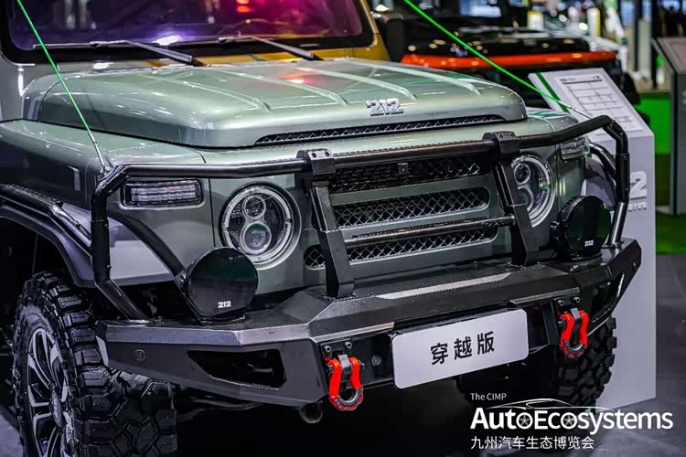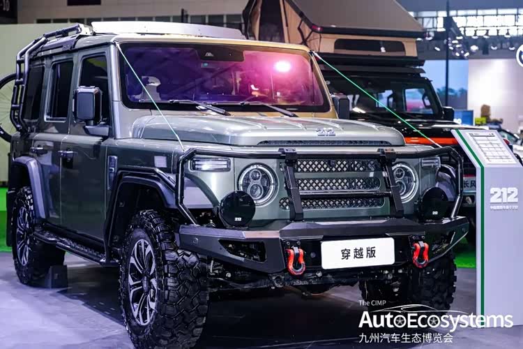 212越野北京212 T01穿越版,是经典硬派越野车型212的原厂深度改装版本,主打极致越野穿越性能,车辆延续212经典方盒子造型,采用军绿色哑光涂装,视觉硬朗复古。前脸升级竞技前杠,集成双拖车钩与防护结构,车顶加装行李架与侧爬梯,车身配备防滚架与侧踏,全方位强化越野防护。底盘搭载非承载式车身+分时四驱系统,升级大尺寸MT越野轮胎与防脱轮毂,配合升高悬挂,大幅提升通过性与复杂路况抓地力,适配沙漠、戈壁等极端越野场景。