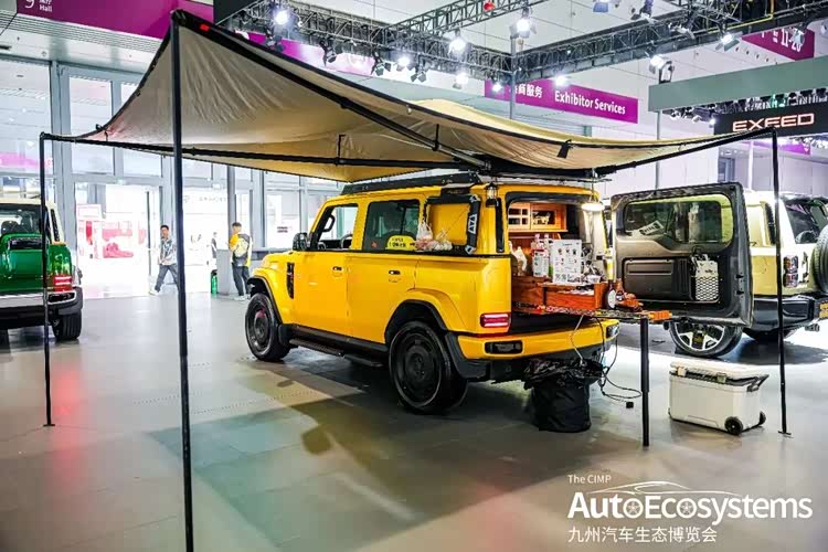 V23露营改装版,是iCAR原厂打造的户外生活方式定制车型,基于iCAR V23纯电硬派SUV打造,主打“移动露营空间”场景化体验。车型采用亮眼的明黄色原厂车漆,搭配全黑封闭式复古轮毂与黑化外观套件,视觉冲击力拉满。核心改装围绕露营场景打造:车顶配备可展开式遮阳天幕,车尾定制实木拓展厨台,集成储物、操作台功能,可直接展开户外烹饪、咖啡制作等场景;配合车辆外放电功能,无需额外电源即可满足户外用电需求。