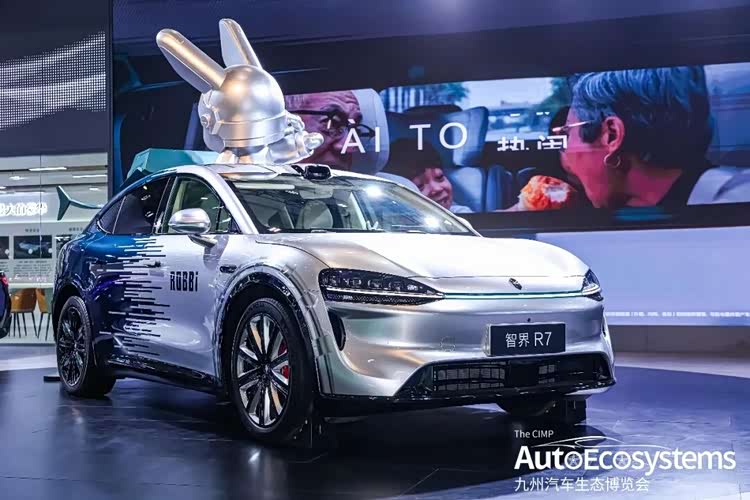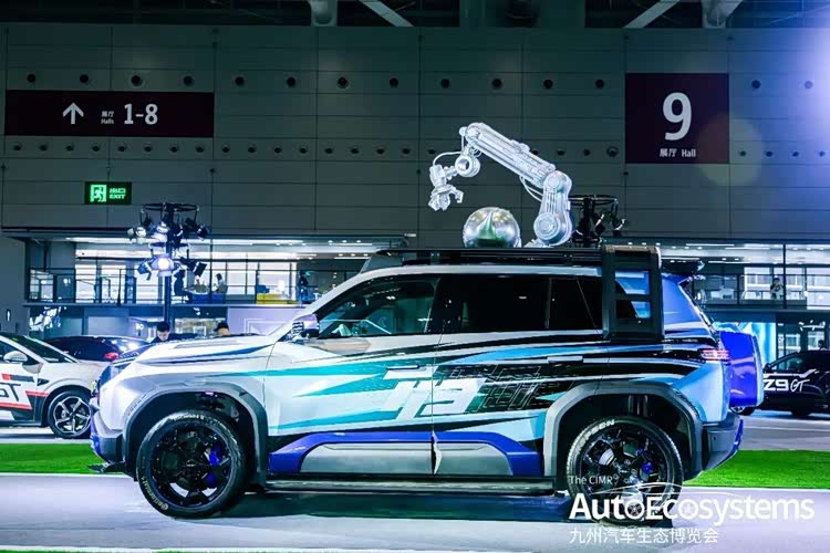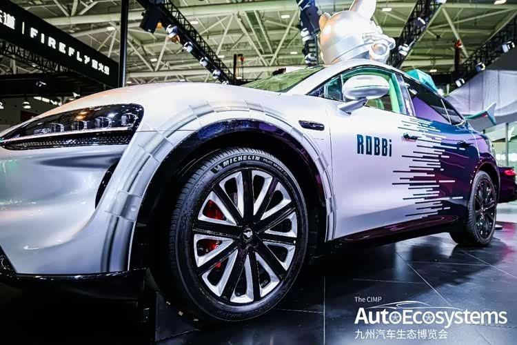 智界R7「大领航家」异形改装车基于R7溜背尾部与低风阻流线打造,车尾推进器的设计来源于ROBBi背上的推进器,机能图腾加持性能轮毂,当ROBBi遇见智界,携手开启重塑边界的科技旅程;智界S7“暗影掠影”凌厉的线条象征S7疾速行驶下的风刃,让原本就肌肉感饱满的车身更具动感,配合亮银的材质,无论亮处暗处都是吸睛的焦点。