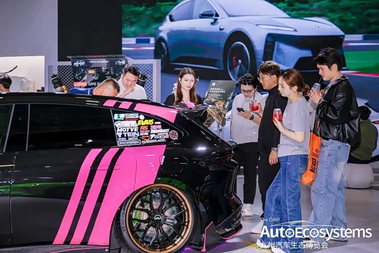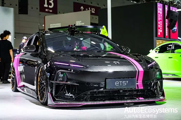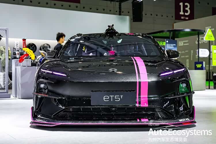 玩转色彩潮流的@Vivi美少女,带着蔚来ET5T黑粉改装版惊艳登场,以极致潮改风格与猎装造型,成为全场吸睛焦点。新车基于蔚来ET5T打造,全车采用亮黑车漆搭配撞色粉拉花,视觉冲击力拉满。外观升级前铲、侧裙、尾翼全套碳纤维套件,搭配黑金配色多辐锻造轮毂与低趴姿态,将猎装优雅与赛道运动感完美融合。