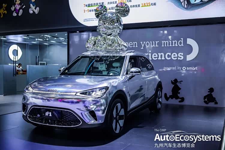 smart精灵#1的迪士尼联名定制版,基于纯电小型SUV打造,主打年轻潮流与IP联名市场。车辆采用镜面镀铬银专属车漆,车顶加装巨型电镀米奇雕塑,车身延续smart家族式贯穿日行灯与封闭式前脸,搭配专属运动轮毂,座舱同步升级迪士尼主题内饰,将纯电出行与潮流文化深度融合。