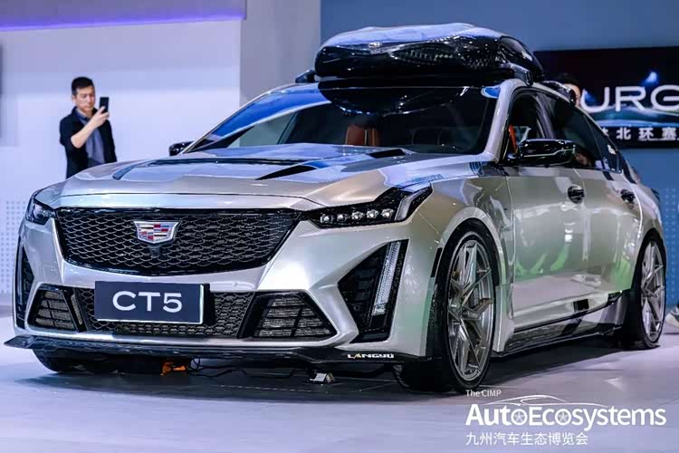 上汽通用凯迪拉克凯迪拉克CT5朗煜定制改装版,是基于凯迪拉克CT5豪华后驱轿车打造的性能向改装车型,由国内知名改装品牌朗煜操刀,主打赛道化外观与实用化升级。车型采用哑光银专属车漆,前脸换装朗煜定制运动前杠与碳纤维前铲,熏黑蜂窝状格栅搭配凯迪拉克经典车标,垂直LED大灯辨识度拉满。引擎盖加装通风散热口,车身配备碳纤维侧裙与宽体轮眉,车顶搭载碳纤维行李箱,强化空气动力学与装载能力。换装19英寸多辐式锻造轮毂,搭配低趴姿态,完美复刻赛道化改装风格。