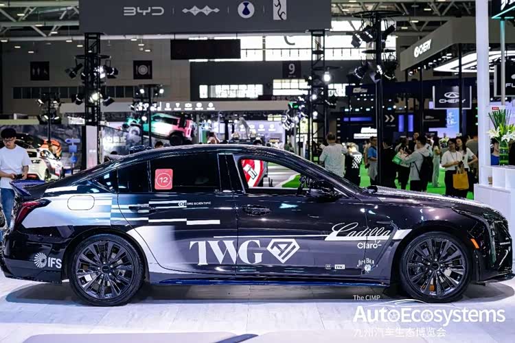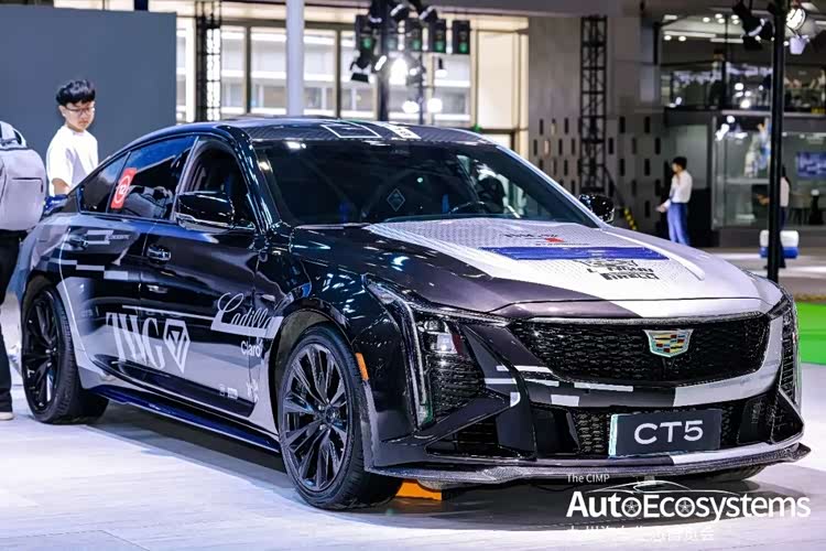 凯迪拉克CT5赛道主题定制改装版,是基于凯迪拉克CT5豪华后驱轿车打造的轻量化赛道风格车型,延续品牌极致操控基因,主打“赛道美学 + 日常可用”的改装理念。车型采用黑银双色渐变专属涂装,车头与引擎盖覆盖经典赛车纹理拉花,车身侧面印有“TMG”等标识,呼应赛道主题。前脸保留凯迪拉克经典的垂直LED大灯与熏黑蜂窝状格栅,搭配低趴运动前铲与碳纤维前唇,强化空气动力学设计。车身侧裙与轮毂均为黑化处理,换装多辐式运动轮毂,视觉张力拉满。