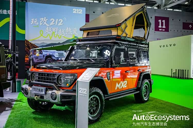 北京212 T01长风MX2露营改装版,是经典硬派越野车型212的全新迭代产品,主打“越野+露营”双属性,精准契合户外玩家需求。车辆延续212经典方盒子造型,采用橙黑撞色涂装,车身印有“MX2”标识,前脸配备竞技前杠与12000磅绞盘,搭配大尺寸AT越野轮胎与防脱轮毂,非承载式车身+分时四驱系统,保障硬核越野通过性。车顶加装可升降式拓展帐篷,侧方配备遮阳棚,将越野底盘与旅居功能深度融合,满足长途穿越、户外露营的双重需求。