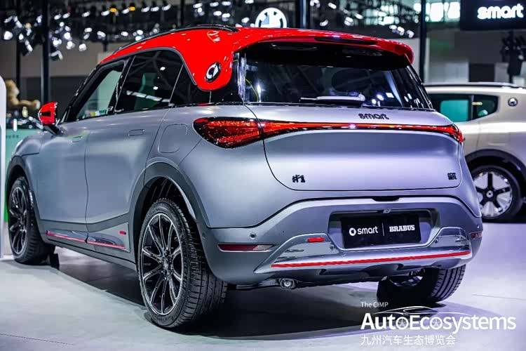 smart精灵#1 BRABUS性能版,专属哑光灰车身搭配烈焰红车顶、后视镜饰条与侧裙拉花,打造出极具辨识度的性能美学。新车前脸采用封闭式设计,搭配贯穿式LED灯带与BRABUS专属蜂窝状前格栅,运动感十足;19英寸多辐式锻造轮毂配合打孔刹车卡钳,进一步强化赛道气息。动力搭载前后双电机四驱系统,综合功率310kW,峰值扭矩568N·m,0-100km/h加速仅需3.9秒;基于SEA浩瀚架构打造,配合智能底盘调校与多种驾驶模式,实现性能与操控的平衡。