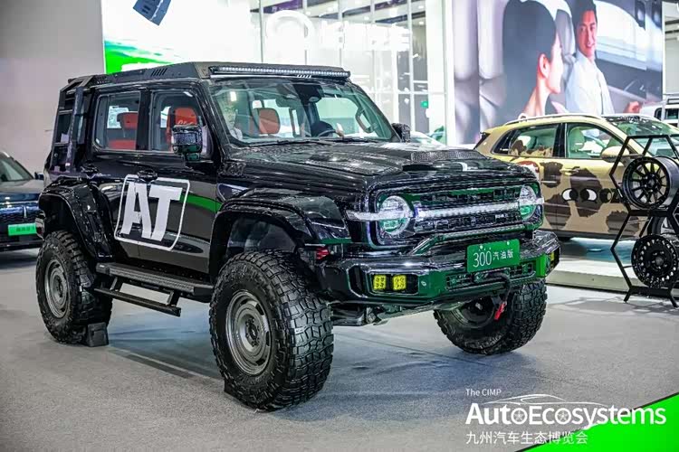 坦克300汽油版AT改装版,新车基于坦克300汽油版打造,外观全面升级越野装备:车顶加装LED长条射灯,车身侧面配备AT字母拉花与防刮轮眉,搭配定制黑色越野轮毂与全地形轮胎,抓地力与通过性拉满;前保险杠集成辅助射灯与拖车钩,机盖通风口设计进一步强化越野气场。