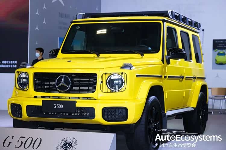 奔驰奔驰带来G500定制版专业越野套装版。这款车采用醒目的电气石黄色车漆,配备原厂专业越野组件,包括大灯保护网、车顶行李架、黑色运动轮毂等,强化了硬派越野气质,兼顾日常通勤与轻度越野需求。