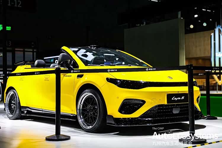 零跑Lafa 5大家车研究所联名定制敞篷改装版,由零跑汽车联合大家车言论团队基于量产Lafa 5深度打造,仅作车展展示,非原厂量产车型。车辆以亮黄为基底,搭配全套运动包围(前铲、侧裙、尾翼)与复古锻造轮毂,核心改装为硬顶敞篷结构,保留无框车门与顶置激光雷达,兼顾潮流个性与原厂智驾配置,车身印有“大家车研究所”专属联名标识,精准触达年轻改装爱好者与敞篷车迷。