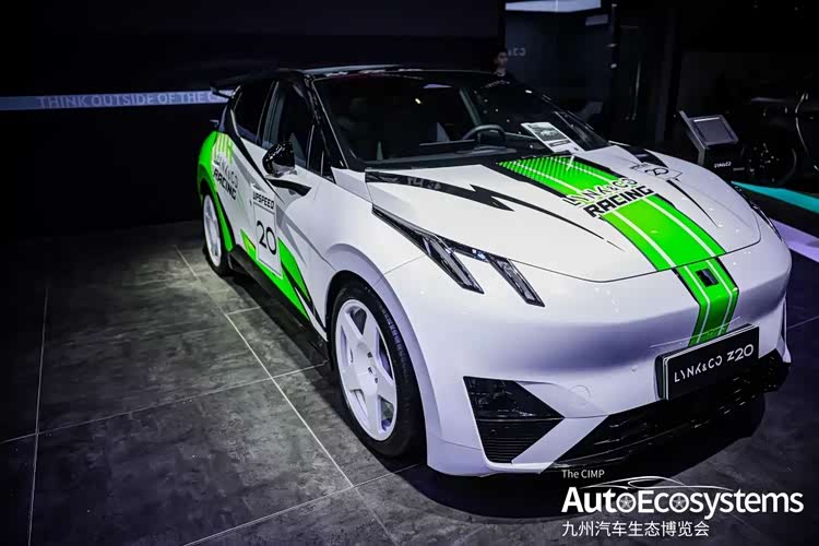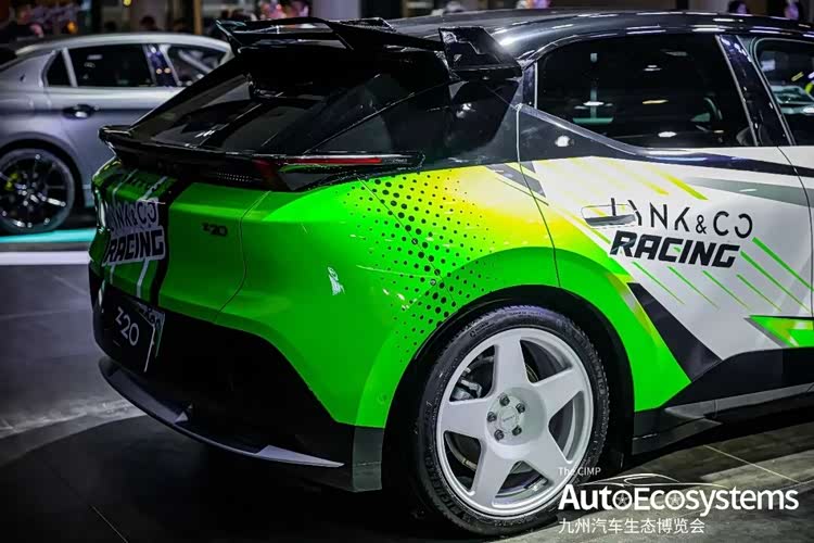 领克Z20的赛道定制改装版本,作为领克旗下全新纯电紧凑型 SUV,该车以“RACING”竞技涂装亮相,打破了纯电车型“家用代步”的刻板印象,展现了领克在电动化时代对驾驶乐趣的极致追求。车辆外观采用白绿撞色赛车拉花,车头贯穿式绿色条纹搭配“LYNK & CO RACING”标识,侧门印有赛事编号“20”,整体风格极具赛道张力。车身升级了运动化空气动力学套件,包括定制尾翼、侧裙与前唇,优化高速行驶稳定性;搭配轻量化五辐式运动轮毂,进一步提升操控响应。