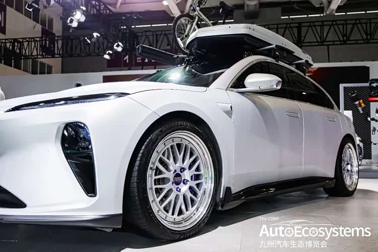 蔚来ET5T、firefly萤火虫双车主@GM的车酷,带来了蔚来ET5T旅行改装版,延续ET5T经典造型,全车采用雾面银改色膜覆盖,搭配BBS复古多辐银色轮毂与低趴姿态,营造出优雅的旅行车氛围。车顶加装大容量行李箱与自行车架,完美适配户外露营、长途自驾等场景,将实用与颜值深度融合。