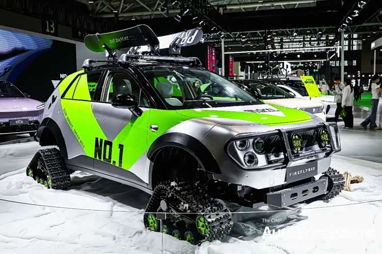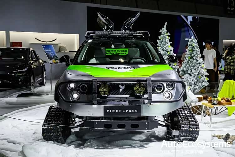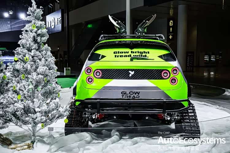 蔚来汽车开启小车征服雪原狂野想象的@Marttin爱玩车,带来firefly萤火虫·热雪疾光,以极限全地形改装形态亮相。车辆采用银绿撞色机甲涂装,延续蔚来萤火虫家族式设计语言,前脸配备原厂竞技防护前杠与射灯,核心改装为四轮履带式行走机构,替代原厂轮胎,大幅提升雪地、冰面等复杂路况的抓地力与通过性;车顶加装行李架与滑雪板拓展套件,将纯电家用两厢车与极限户外场景深度融合,适配冰雪自驾、全地形穿越等场景。