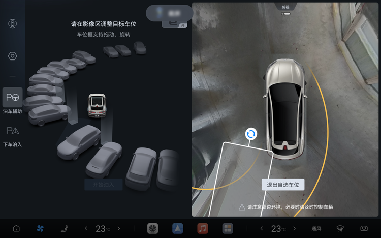 不仅如此,泊车体验也迎来集中升级,360全景界面支持自由旋转拖动车位框,下车泊入失败自动下电并短信提醒,新增泊车车外语音提示与泊车五视角记录,让泊车过程更透明、更安心。