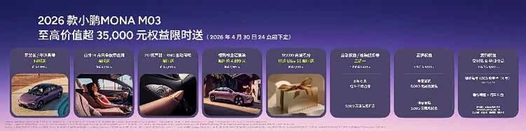 凭借更精致的设计、更越级的配置、更智能的体验,2026 款小鹏 MONA M03 再次刷新了 A 级纯电轿车的价值标杆。未来,小鹏汽车将继续坚持以用户需求为中心,用持续的技术创新与产品迭代,让更多年轻人轻松拥有高品质、高智能的纯电出行生活,让科技真正走进日常、普惠大众。