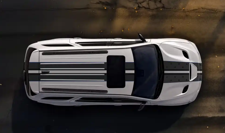 外观方面,特别版最引人注目的特征是贯穿车身的星纹拉花,翼子板处增加了带有美国国旗元素的“America250”专属徽章,同时升级了黑色20英寸轮圈,整体风格更具纪念意义与视觉冲击力。