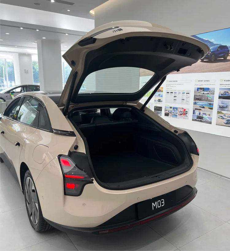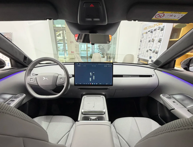内饰部分,2026款 小鹏MONA M03(参数|询价)应用D型运动电容⽅向盘,⽀持⽅向盘加热功能。⼿机⽆线充电等区域升级仿麂⽪材质,新车质感肉眼可见的提升。