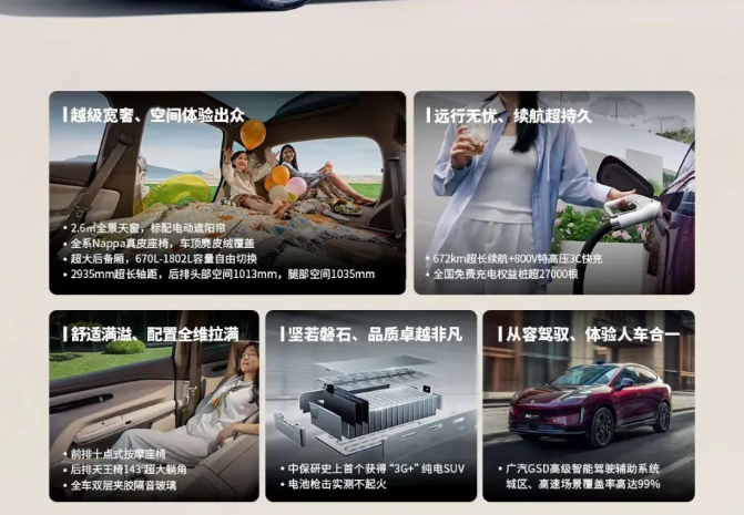 智能辅助驾驶方面,实力强悍,彻底解放双手。搭载广汽GSD高级智能驾驶辅助系统,攻克复杂道路驾控难题,城区、高速场景覆盖率超99%,不管是高速领航、自动跟车、变道避障,还是城区避让行人、自动泊车,功能一应俱全,能精准预判路况,规避突发风险,高速长途、城市拥堵路段都能大幅减轻驾驶疲劳,就算是新手也能从容驾驭,智能体验完全不输小米YU7。