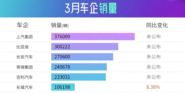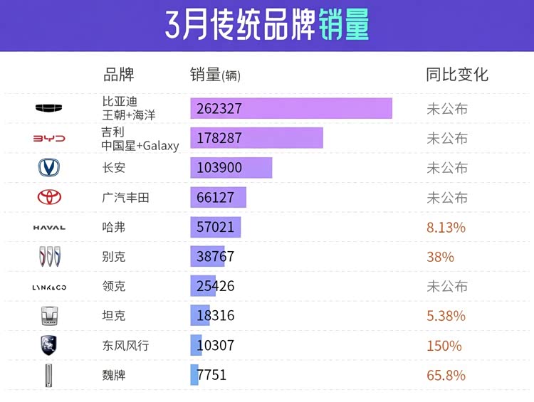 传统车企在3月同样呈现环比增长趋势,尤其是头部自主品牌继续保持较大规模。比亚迪王朝与海洋系列合计销量为262327台,其中宋、元、秦等产品序列构成主要销量基础,海鸥、海豹及海豚在各自细分市场维持稳定输出。技术层面,3月发布的第二代刀片电池及配套闪充系统,为后续车型升级提供支撑,充电效率指标预计将成为新一轮竞争焦点。