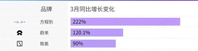在同比增速层面,方程豹品牌3月销量达到25926台,同比增长约222%。当前销量结构仍以钛7为主,产品定位覆盖城市与轻越野使用场景。后续纯电版本的推出将补充动力结构,进一步扩展目标用户群体。同时,品牌规划中的轿车产品也将在年内发布,形成更完整的产品线。蔚来与极氪在3月同样保持增长态势,销量主要集中在三排SUV产品序列,家庭用户成为核心消费群体。按照产品规划,两者后续将分别推出ES9与8X,继续围绕空间与智能化配置展开竞争。小米汽车方面,3月交付量超过2万台,新款SU7在上市初期即实现约7000台交付,市场关注度持续。