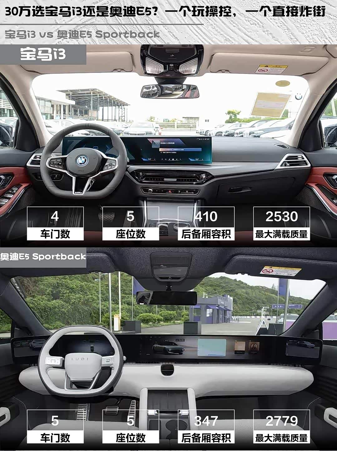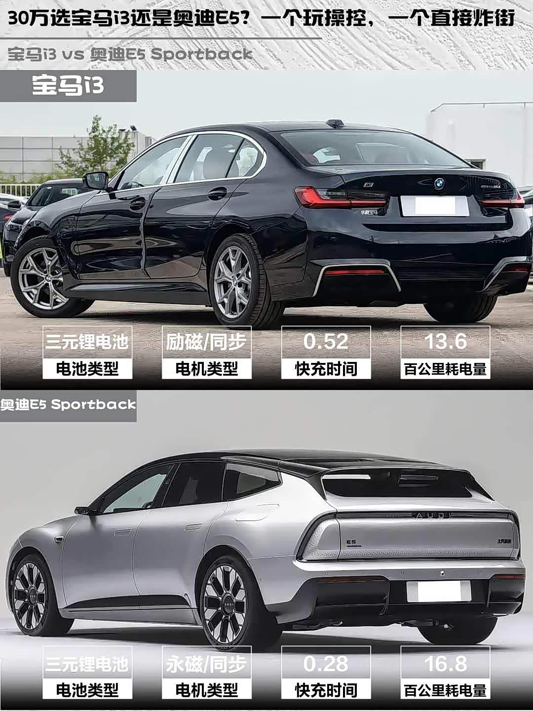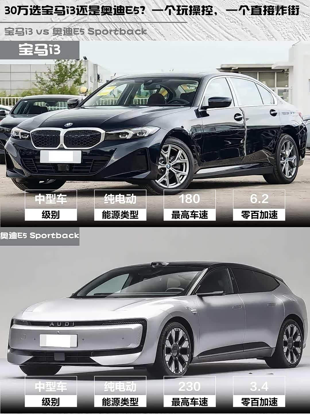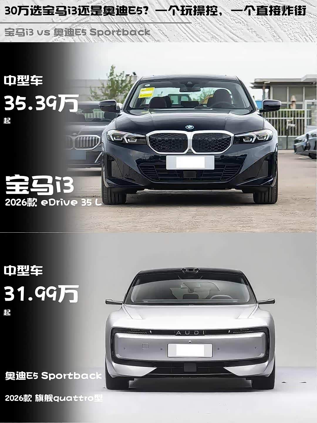 宝马i3 2026款 eDrive 35 L vs 奥迪E5 Sportback(参数|询价) 2026款 旗舰quattro型,30万级纯电轿车怎么选?🤔