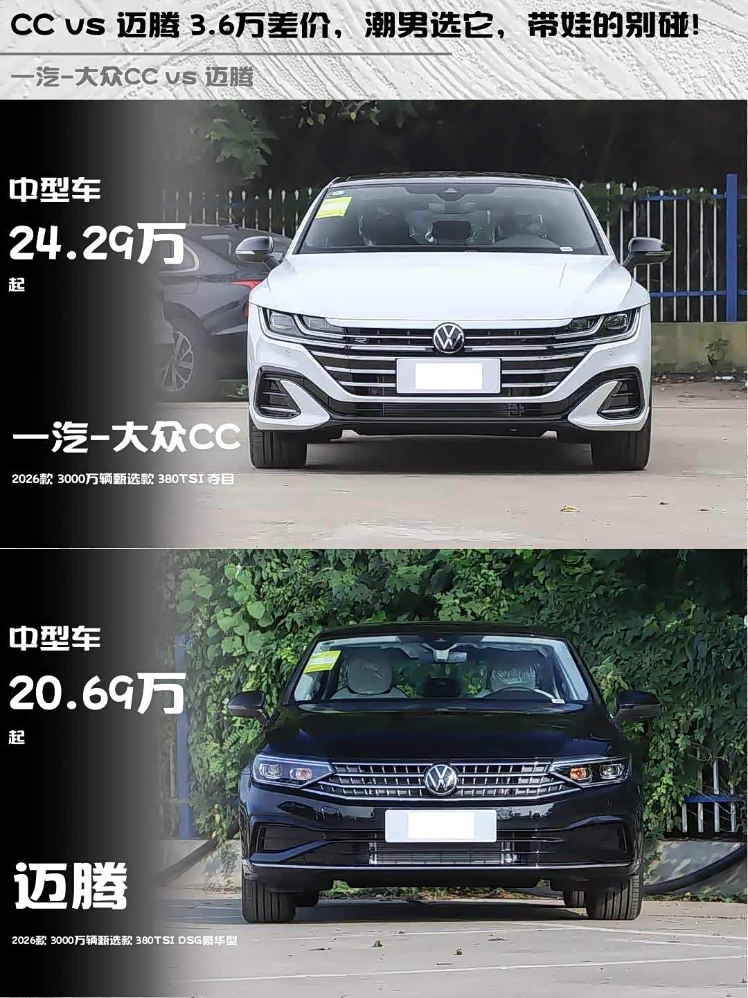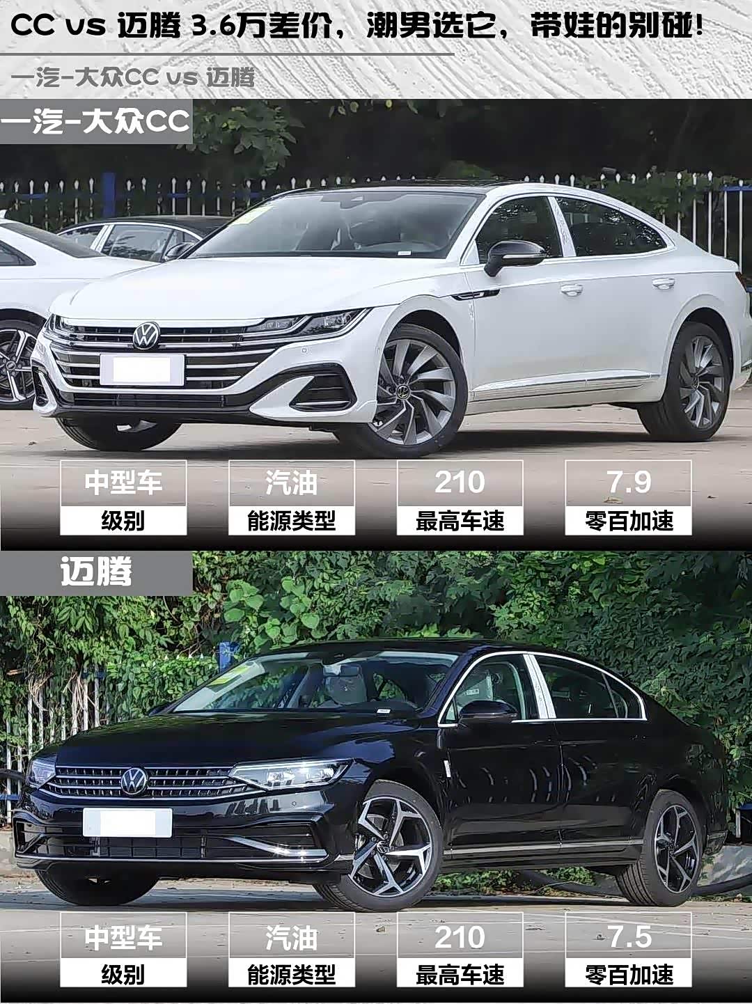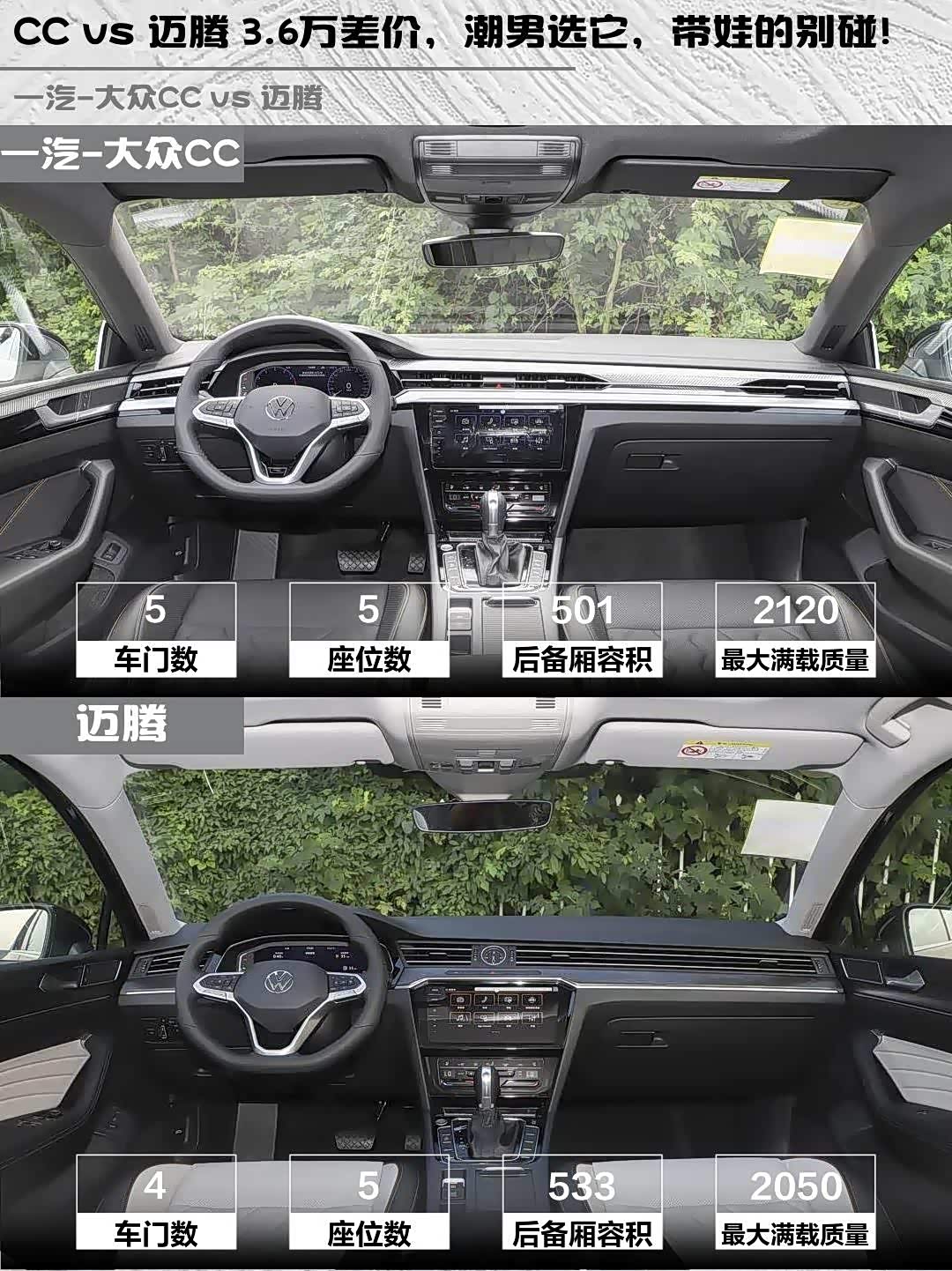 CC vs 迈腾 3.6万差价,潮男选它,带娃的别碰!