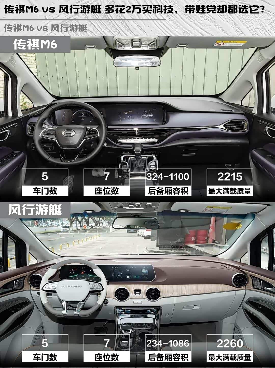 传祺M6 vs 风行游艇 多花2万买科技,带娃党却都选它?
