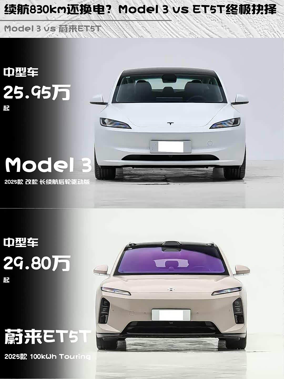最近在Model 3 2025款改款长续航后驱版和 蔚来ET5T(参数|询价) 2025款100kWh Touring之间纠结了好久,终于试驾完来交作业了!两款都是30万级纯电热门选手,但性格差异真的很大👇