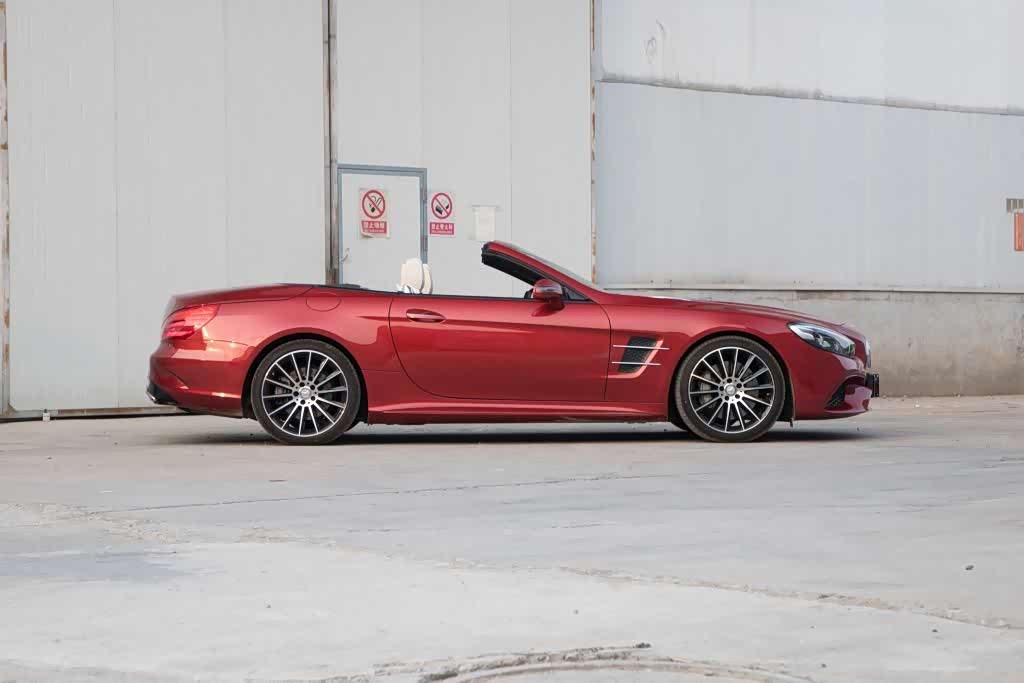 作为 奔驰SL级(参数|询价)的经典款,2017款SL 400的颜值放在今天依然能打。4646×1877×1304mm的车身比例协调,长车头短车尾的跑车姿态,搭配蚌壳式机盖和鲨鱼鳃侧通风口,复古中透着运动感。最吸睛的还是电动硬顶敞篷,只需15秒就能完成开合,不管是在海边公路还是城市街头,按下按键的瞬间就是全场焦点。
